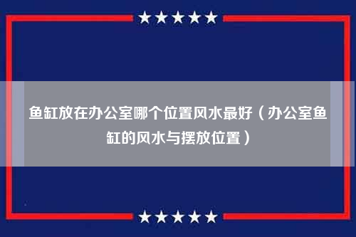 鱼缸放在办公室哪个位置风水最好(办公室鱼缸的风水与摆放位置)