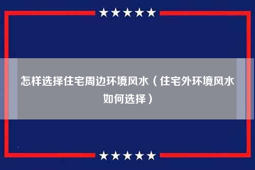 怎样选择住宅周边环境风水(住宅外环境风水如何选择)
